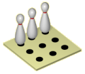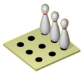Jeder wirft für sich. Es werden 5 Runden gespielt, je 1 Wurf.| 1. Runde: 3 Kegel linksvorne(1,2,4) mit 1 multipliziert. | ![]() |