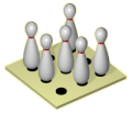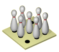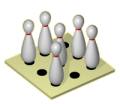 Jeder Spieler darf je zweimal auf sechs verschiedene Figuren werfen. Die gefallenen Holz zählen nur, wenn das Bild abgeräumt wird.Jedes Holz zählt einen Punkt. Wird mit einem Wurf abgeräumt., werden für die nicht genutzte Kugel 10 Punkte gutgeschrieben. Die letzte Figur (6) zählt nur, wenn das Vordereck/Vorderholz stehenbleibt.