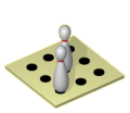 Jeder Spieler hat 15 Würfe, die beliebig auf die 8 Figuren verteilt